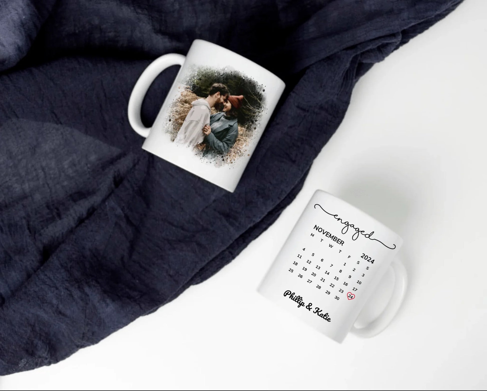Couple Mug and Poster - Personalized Calendar - Watercolor Filter